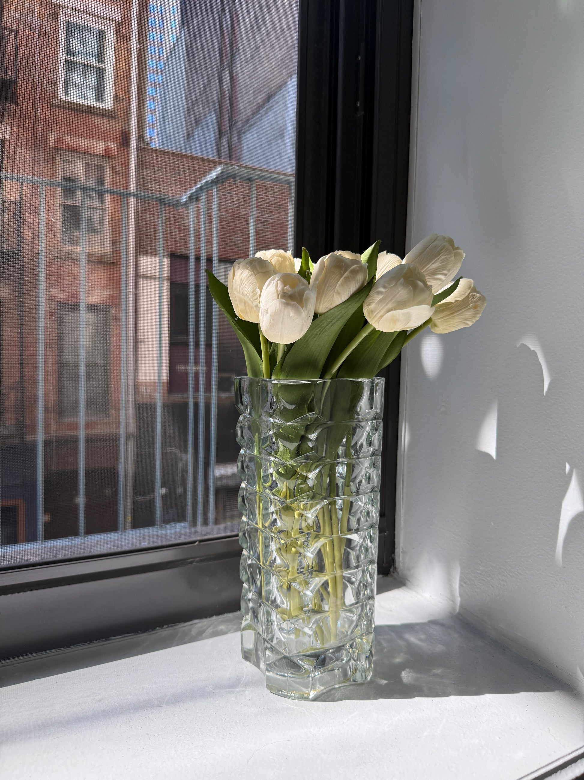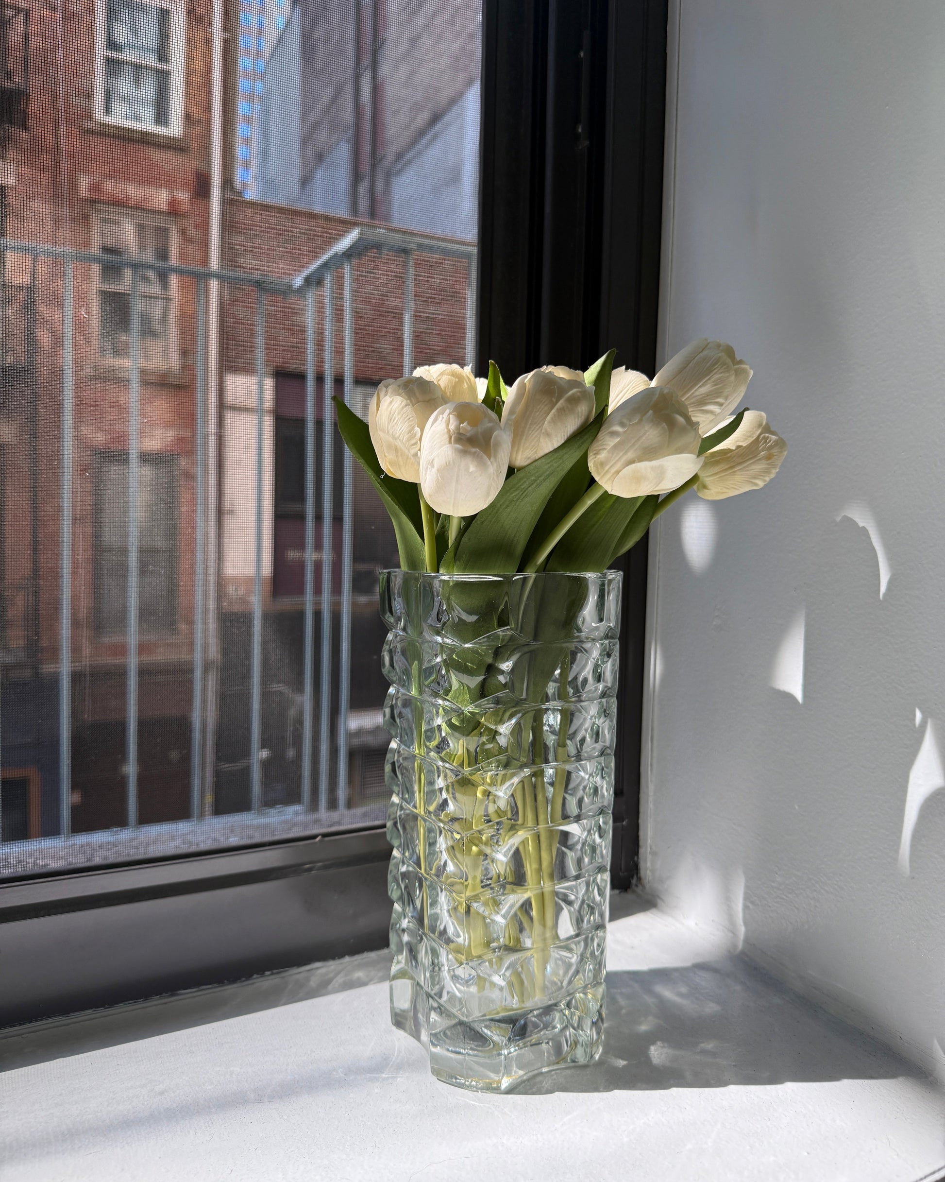 sculptural brutalist vase with textured surface and earthy tones. a striking standalone piece or dramatic with branches.